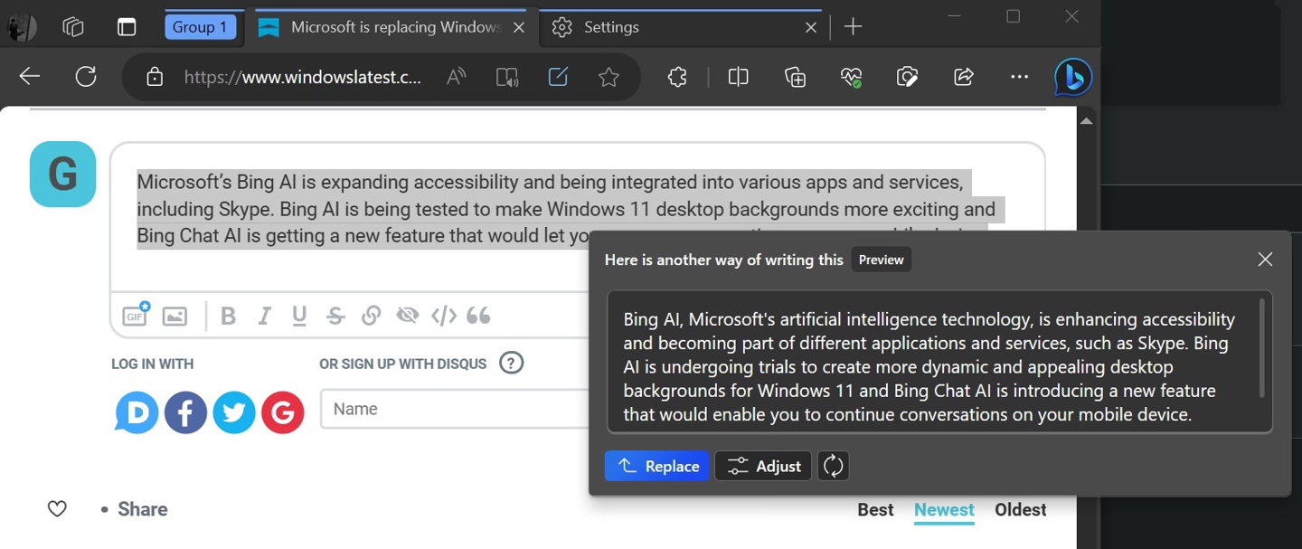 当用户在网站(如领英)的文本框中输入内容时,系统会自动弹出一个小窗口。这个写作助手不仅能帮助用户校对语法、修正错误,还提供了文本重写功能,用户可根据需要选择简洁、友好或专业的语气来调整内容,这类似于微软此前在 Edge 浏览器中提供的功能,并有望成为 Grammarly 等工具的替代品。