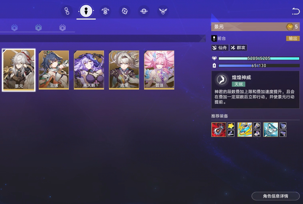 群攻体系中非常关键的一位角色,配合大小黑塔会令队伍的伤害变得非常足,即便在面对A8级别的敌人时也能快速削掉对手的血线。而且景元的神君在货币战争里能快速叠层,层数到达一定值后还能立刻行动,让神君百分百能打出伤害且不会浪费层数,还能令景元获得额外回合。