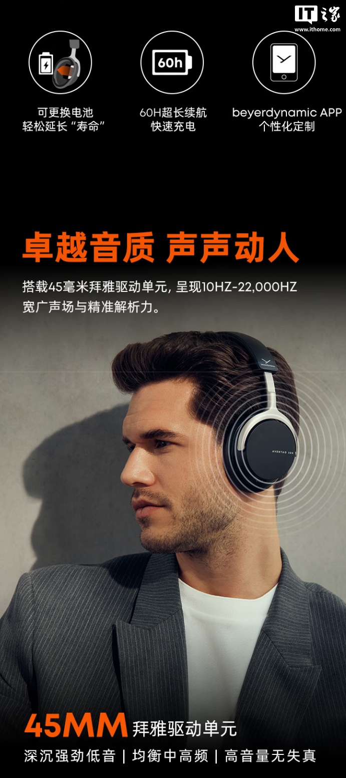 11 月 22 日消息,拜雅 AVENTHO 阿凡途 200 耳机现已上市,是品牌首款可更换电池的头戴式耳机,续航最长可达 60 小时,支持主动降噪,到手价 2499 元。