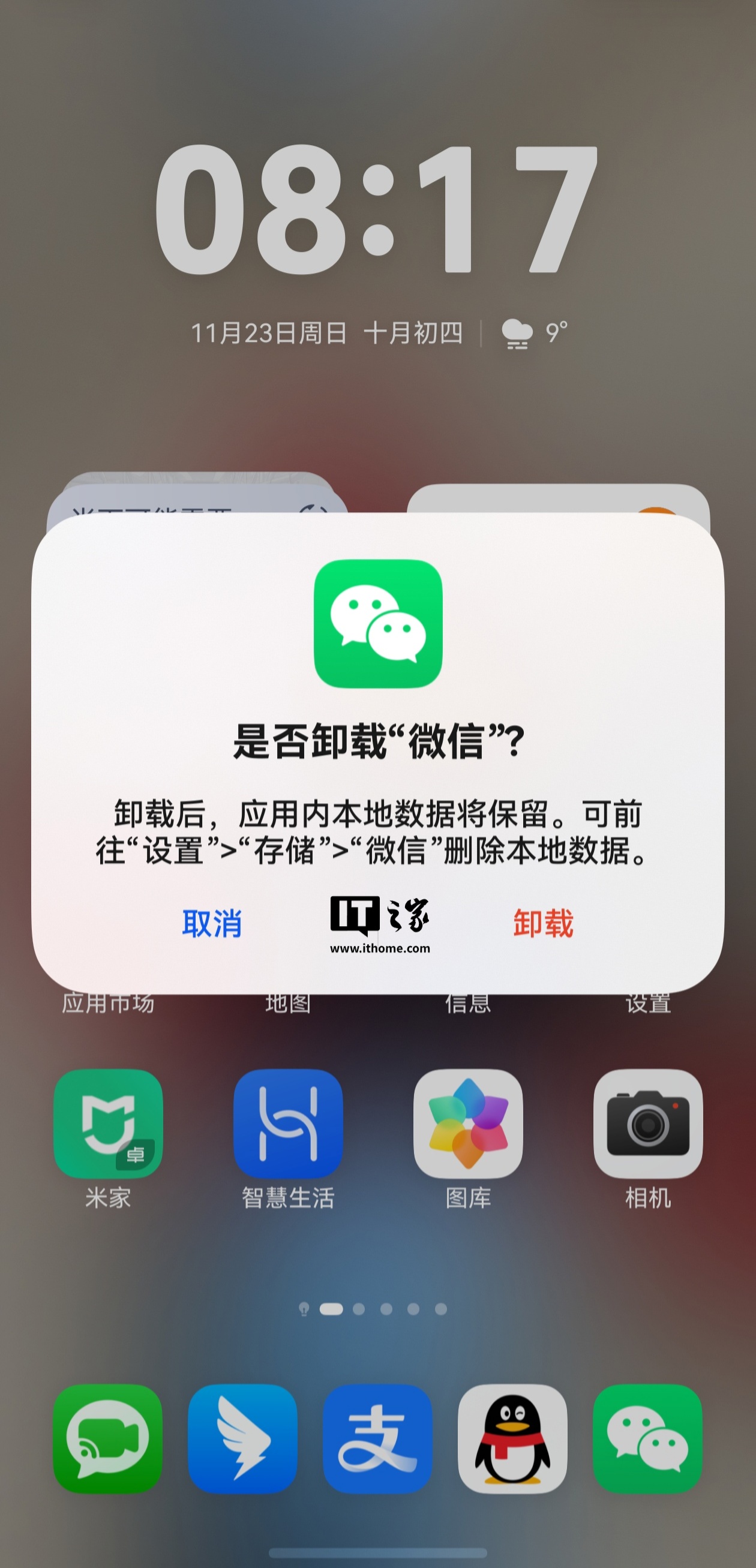 卸载后,应用内本地数据将保留。可前往“设置”>“存储”>“微信”删除本地数据。
