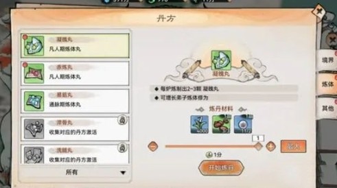 1、通关灵田、林场、矿场、炼器阁、符箓坊等可以获得丹方材料。