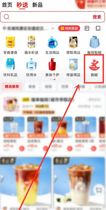 2、在搜索框下方找到跑腿这个图标,点击进入