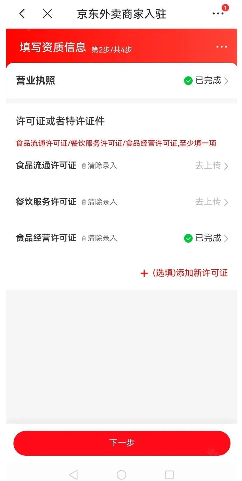 选择店铺类型(连锁店/单店),按提示上传资料。