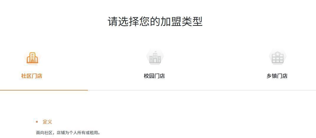 3、在新的页面中选择自己想要加盟的类型:社区门店、校园门店、县镇门店