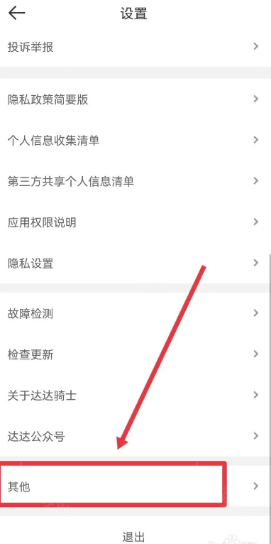 1、首先打开达达骑士app,进入设置页面,在设置页面进入其它页面