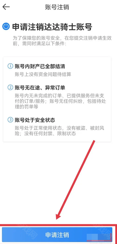 3、确认账号满足相关条件后点击下方的申请注销即可