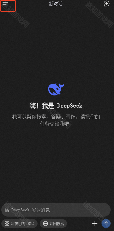 1、打开DeepSeek软件,按下左上方的2条横杠,打开菜单