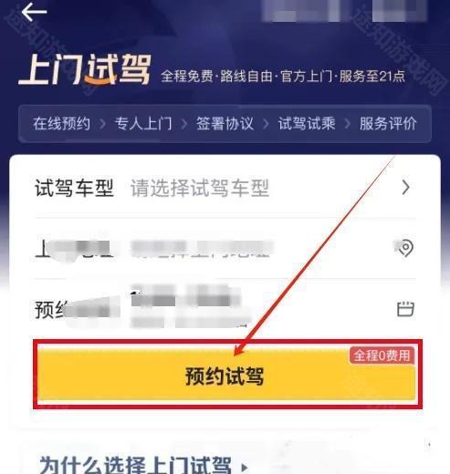 答:首页→车型大全→上门试驾→填写相关信息后点击预约试驾