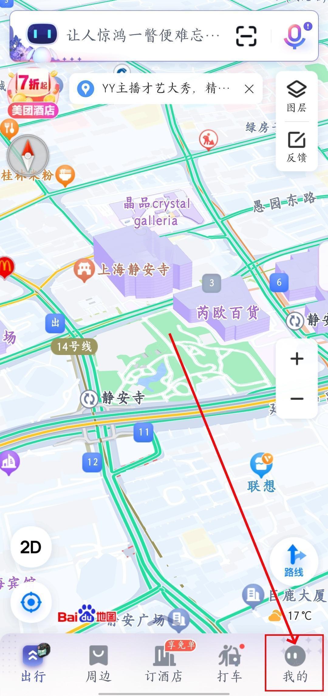 1、首先打开百度地图,点击右下角【我的】。