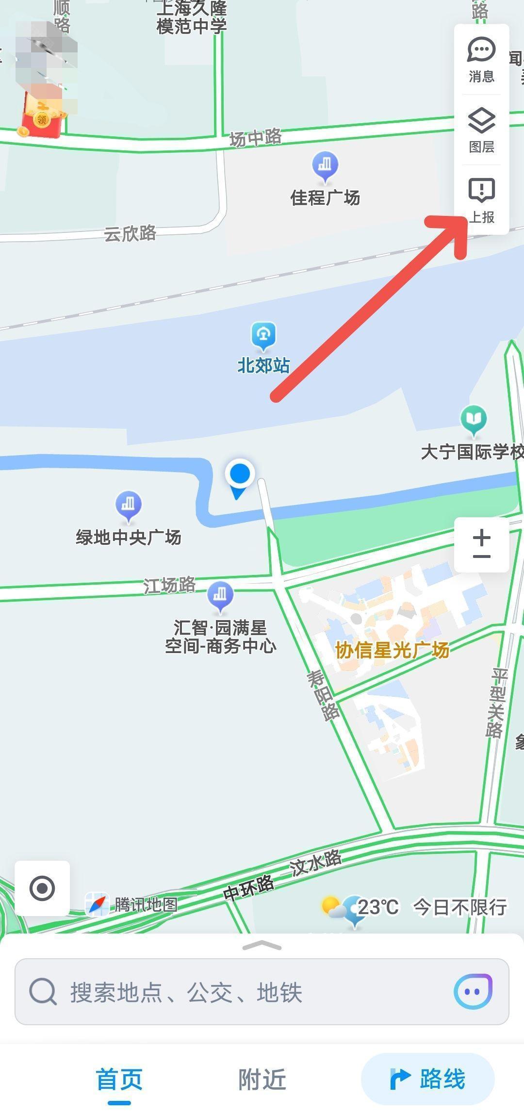 1、首先前往需要添加的商户的位置,打开腾讯地图APP,点击【上报】。