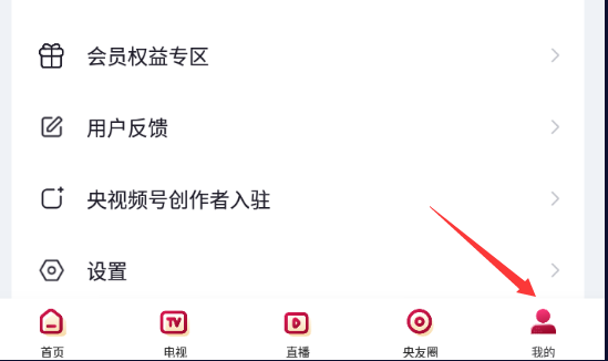 1、首先打开央视频APP,在下方菜单中,找到【我的】。