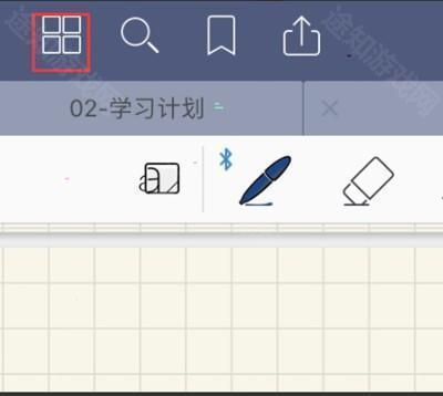 1、首先打开Goodnotes,打开一份笔记,点击左上角的四个方框。