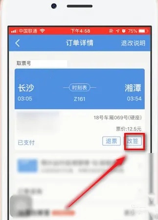 点击“改签”按钮:在订单详情页,点击“改签”按钮