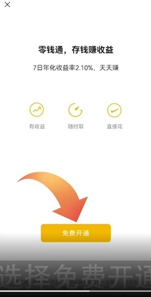 3、然后钱袋之中点击零钱通选项然后选择免费开通即可。