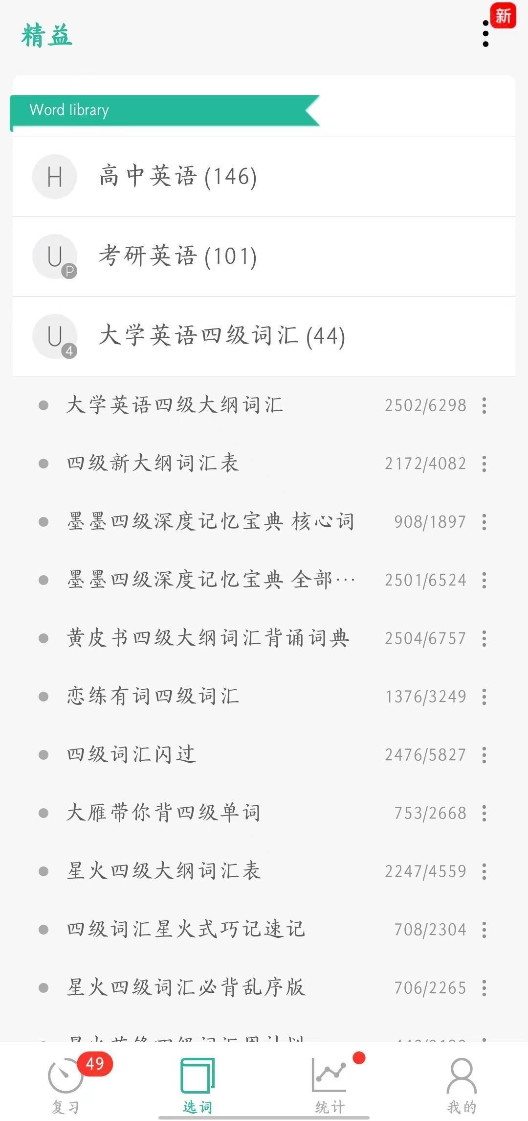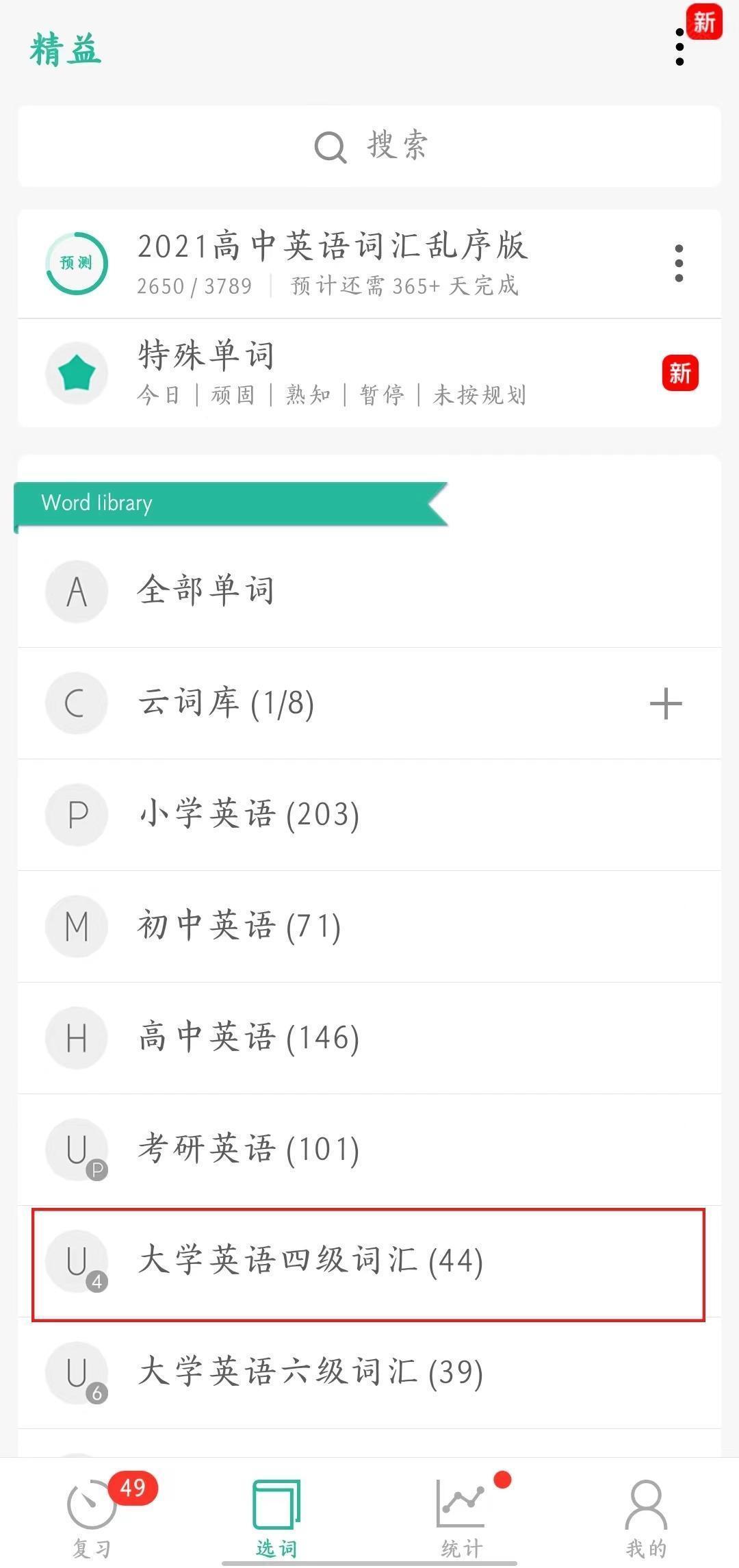 2、然后选择想要更换成的单词范畴,比如这里选择大学四级。