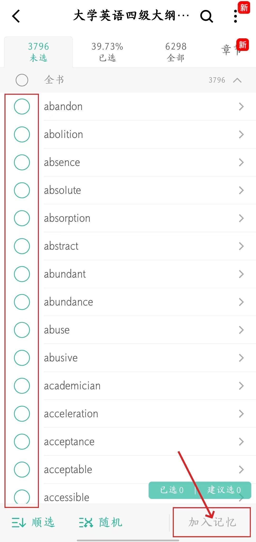 4、最后选择合适量的单词,点击【加入记忆】即可。