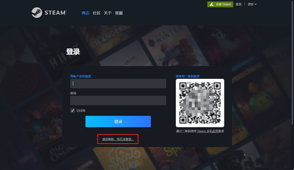 2、在登录页面会有一个二维码,使用手机steam扫码登录后再进行密码重置操作。