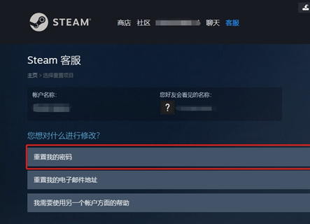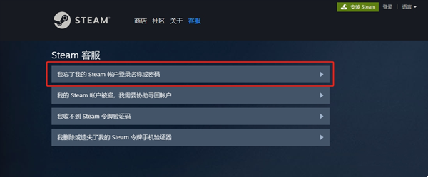 2、然后选择选项中的【我忘了我的steam账户登录名称或密码】;