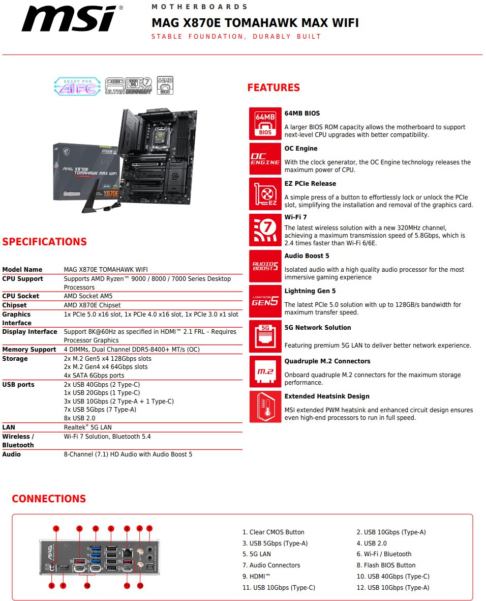MAG X870E 战斧导弹 Tomahawk Max WiFi