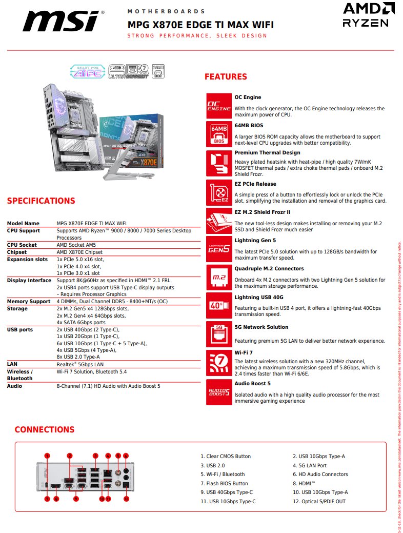 MPG X870E 刀锋 EDGE TI Max WiFi