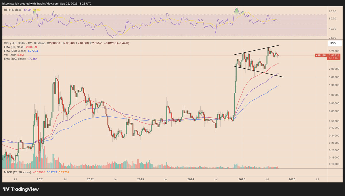 XRP/USD 周线价格图表。来源:TradingView