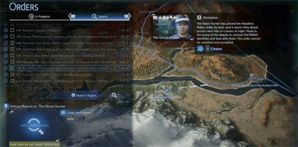 次要订单110需要在夜晚驾驶三轮巡航摩托车前往幽灵猎手设施东边的目标地点。