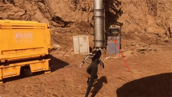 6、然后踩着箱子到就集装箱的位置,解锁最后一个机器。