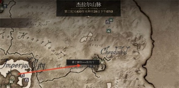 1、首先需要从地图的东北本分开始寻找,从香丁赫尔东大门出发,一路往东方向行走。
