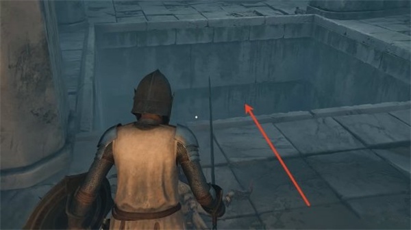 7、站到豁口的位置,使用火球术或者弓箭攻击他以后,立刻跳下去,钻到旁边石柱的缺口里面。