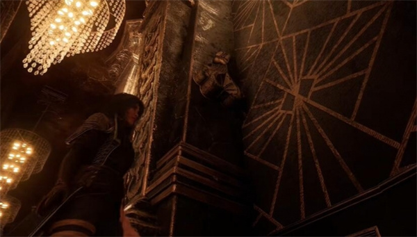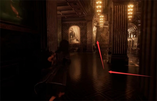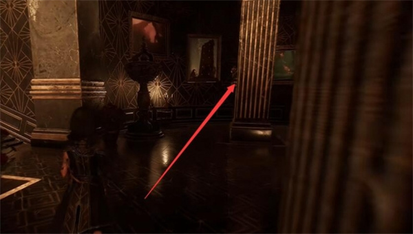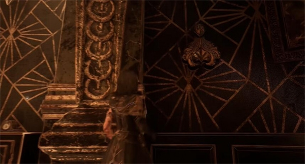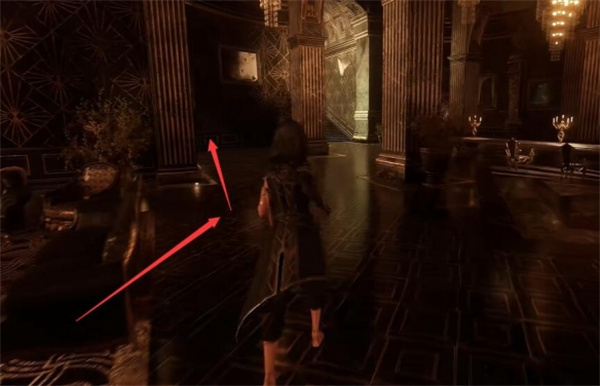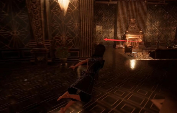 1、玩家可以前往宅邸的二楼餐厅壁炉旁的墙壁这里。