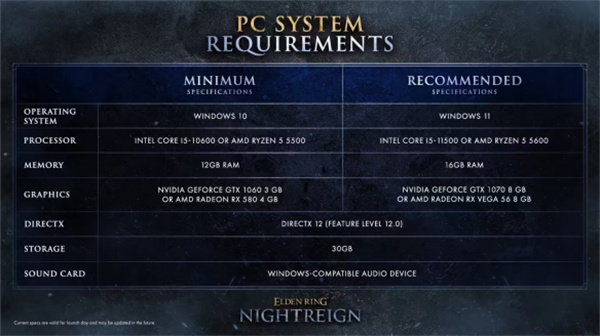 艾尔登法环衍生新作艾尔登法环黑夜君临将于 5 月 30 日正式上线,游戏发售在即,还有许多玩家对该作的PC配置需要还不太清楚,下面就为大家带来艾尔登法环黑夜君临的PC配置需求说明,有需要的玩家可以参考。