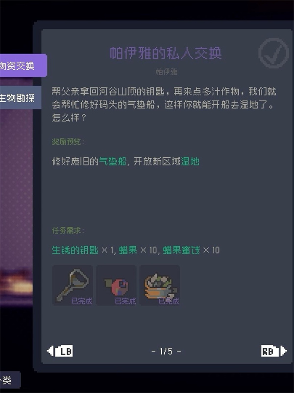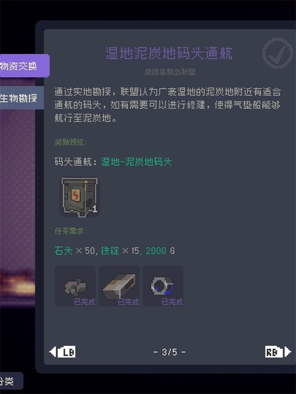 第三和第四个任务都是建造湿地的码头。(但基本只是为了完成第五个任务而做,基本没啥用)