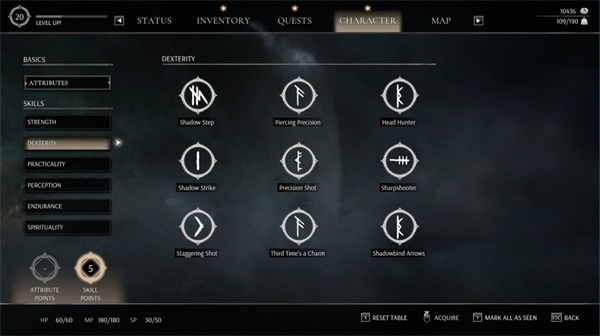 敏捷属性:每点增加攻速(+1%),远程伤害(+3%),抵抗状态效果(+3%),减少冲箭和射箭的耐力消耗(-2%)。