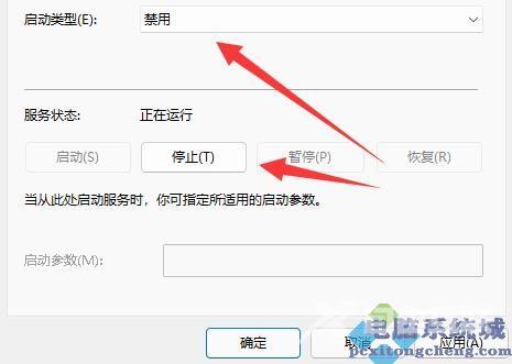 4、最后将启动类型改为禁用再点击下方停止即可。