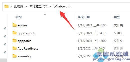 1、首先打开此电脑,进入C盘的Windows文件夹。