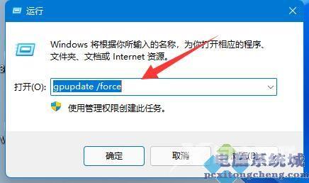 6、最后输入gpupdate /force,回车运行就可以让组策略恢复默认设置了。