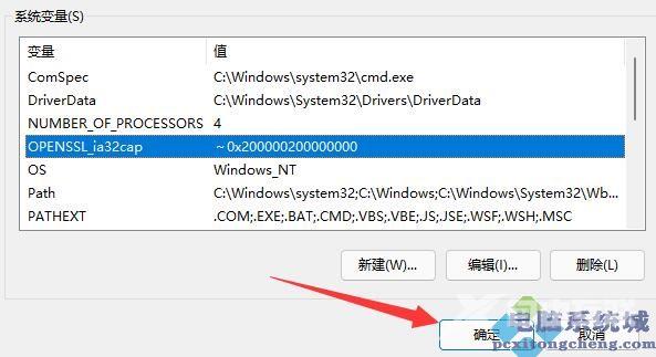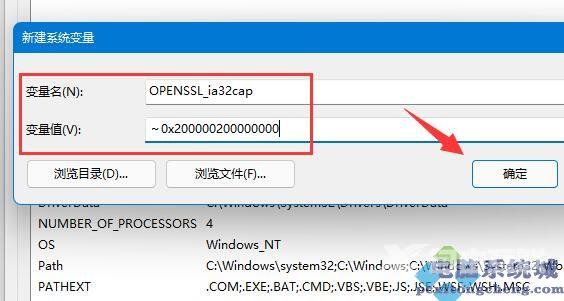 5、接着在变量名中输入OPENSSL_ia32cap,在变量值中输入~0x200000200000000并确定保存。