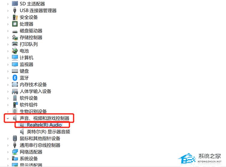 1. 按下键盘win+x,打开设备管理器,展开’声音、视频和游戏控制器‘,右键‘Realtek Audio’,选择更新驱动。