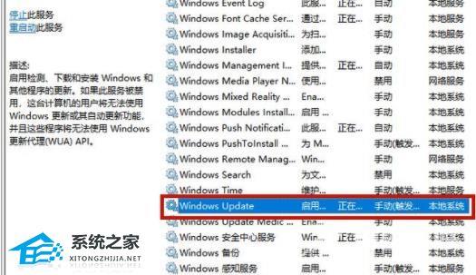 2. 进入到新的窗口界面后,选择右侧中的“windows update”双击打开。