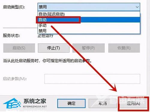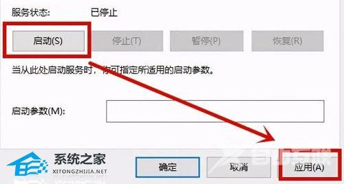 4. 然后点击“服务状态”中的“启动”按钮,最后点击应用确定就可以了。