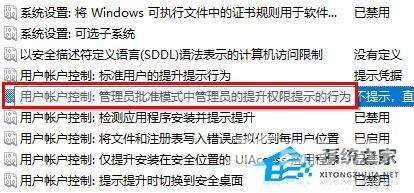 3. 随后找到右侧中的“用户账户控制:管理员批准模式中管理员的提升权限提示的行为”双击打开。