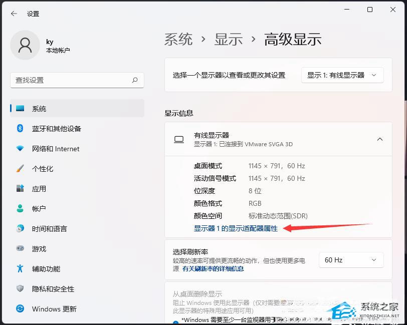 4.当前路径为:系统 - 显示 - 高级显示,点击显示器 1 的显示适配器属性。