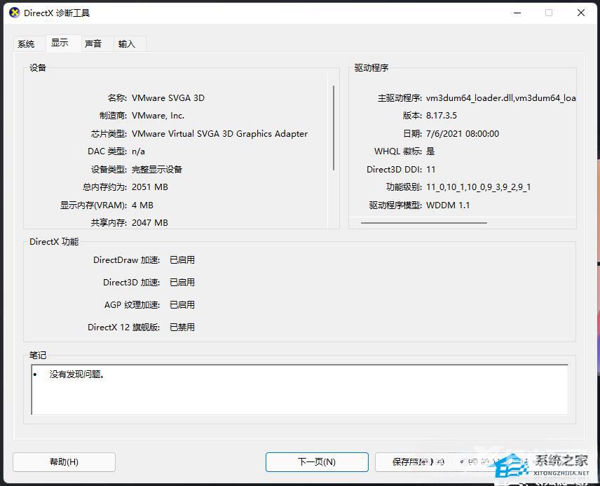 2.DirectX 诊断工具窗口中,切换到显示选项卡,就可以查看显存信息。