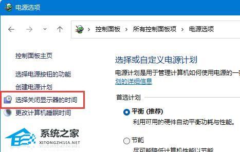 5. 再点击左边栏的“选择关闭显示器的时间”。