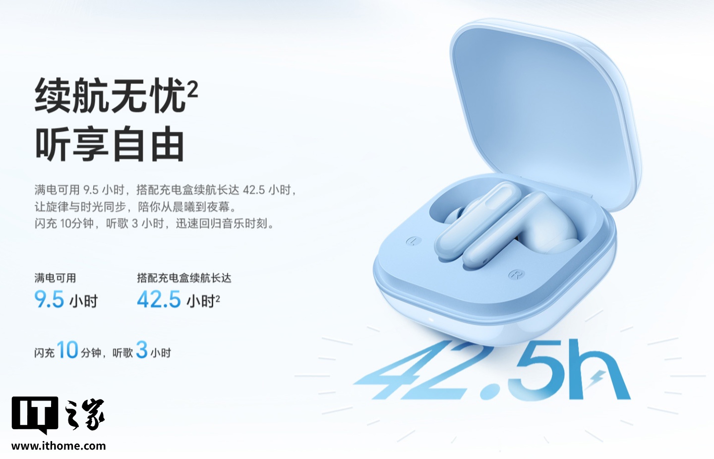 据介绍,荣耀 Earbuds S 无线耳机搭载 12.4mm 大喇叭单元,支持 49dB 深度主动降噪技术。该耳机满电可用 9.5 小时、搭配充电盒续航可达 42.5 小时,支持闪充 10 分钟听歌 3 小时。
