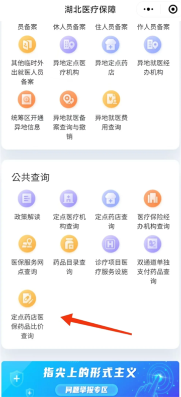 3.在功能列表中选择【定点药店医保药品比价查询】;