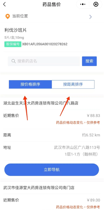 6.系统将显示查询结果,用户可根据价格或距离进行筛选。