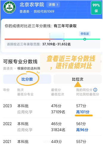 3.支持查看专业三年位次趋势,识别持续升温的热门专业