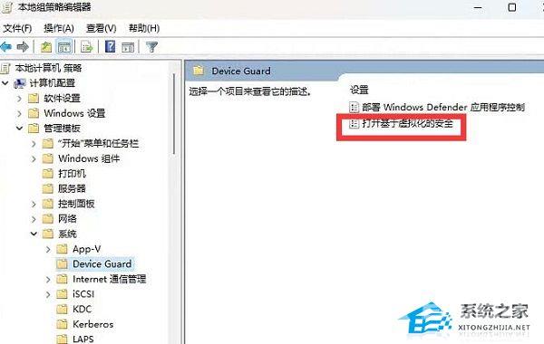 2. 进入到组策略编辑器界面后,依次点击左侧栏中的“计算机配置——管理模板——系统”,点击其中的“Device Guard”选项。