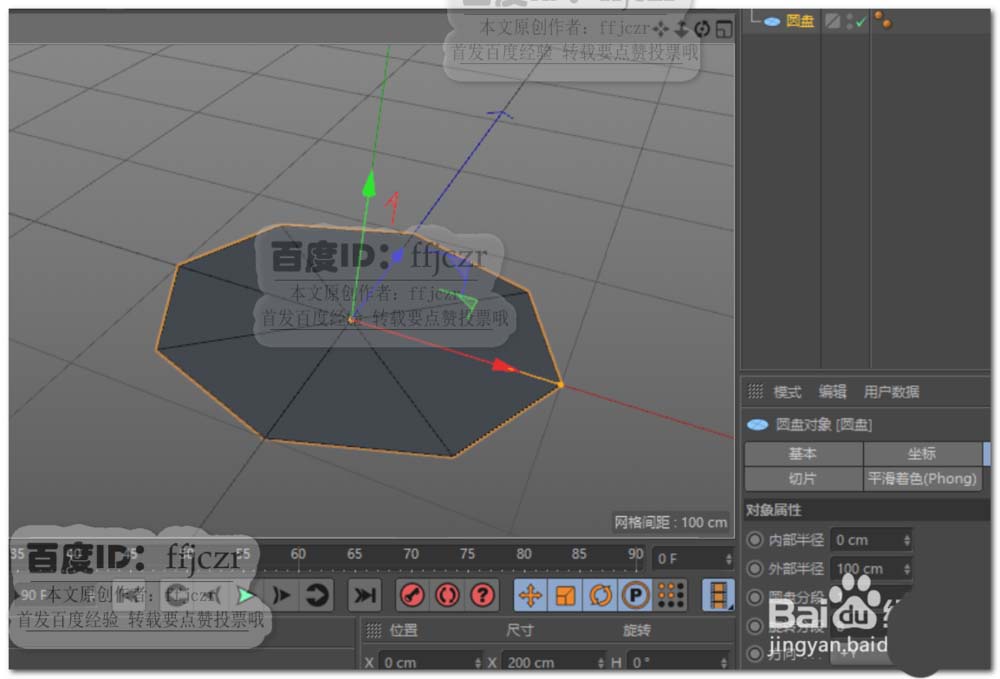 1、创建一个半径为100的圆盘,圆盘分段为1,旋转分段为8(可以是8的倍数),方向为+Y.